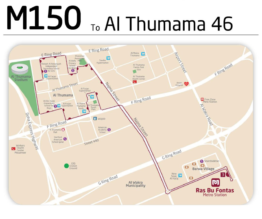 The M150 route will cover those residing between Al Thumama Stadium and the Kharamaa Awareness Park and includes Al Meera, Al Furjan market and about three independent schools in the vicinity.