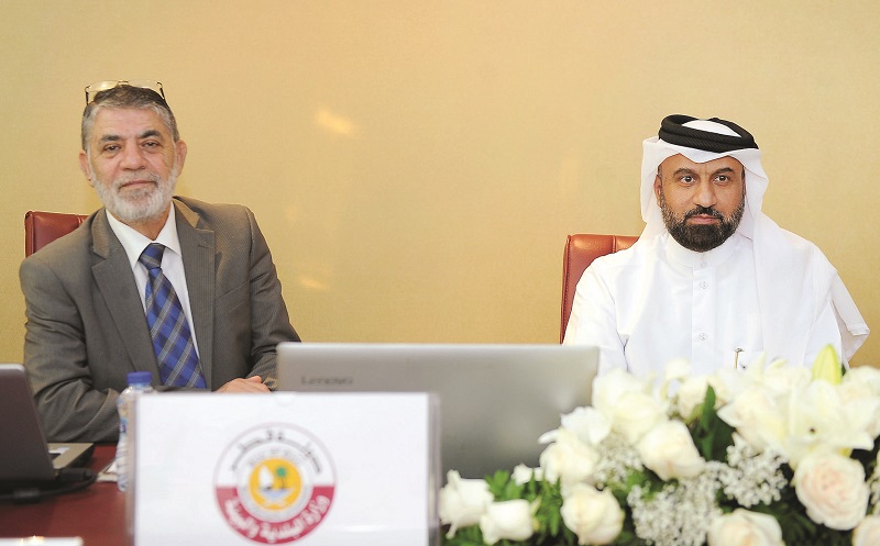 Eng. Mohamed Abdelkarim Al Awamla (left) and Yousef Khalid Al Khelaifi during the workshop, yesterday. Pic: Baher Amin / The Peninsula