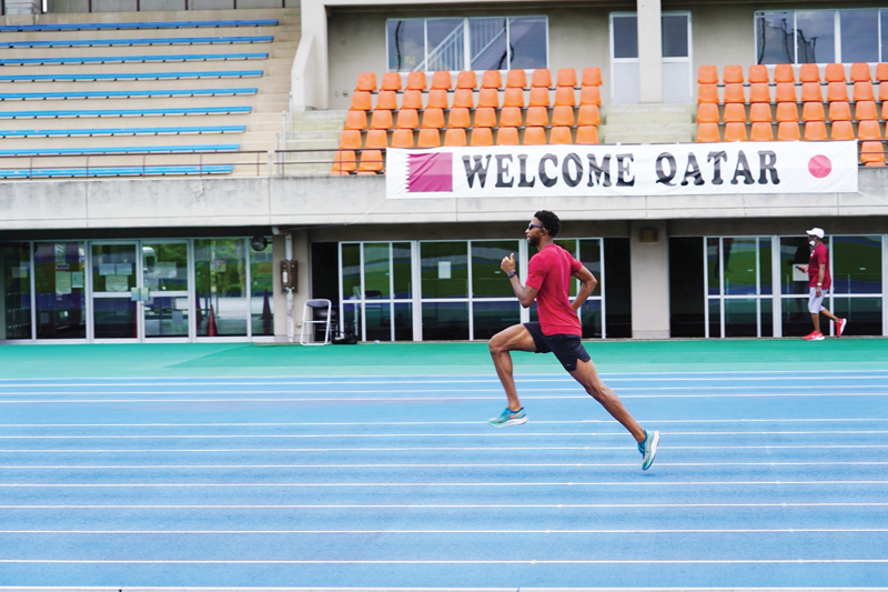Asian champion and World Championship bronze winner Abderrahman Samba in action during a training session at Team Qatar's base camp in Takasaki, Japan, yesterday.