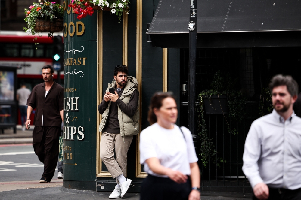 Diego Galdino watches for pickpockets in London on August 7, 2025. (Photo by Henry Nicholls / AFP)