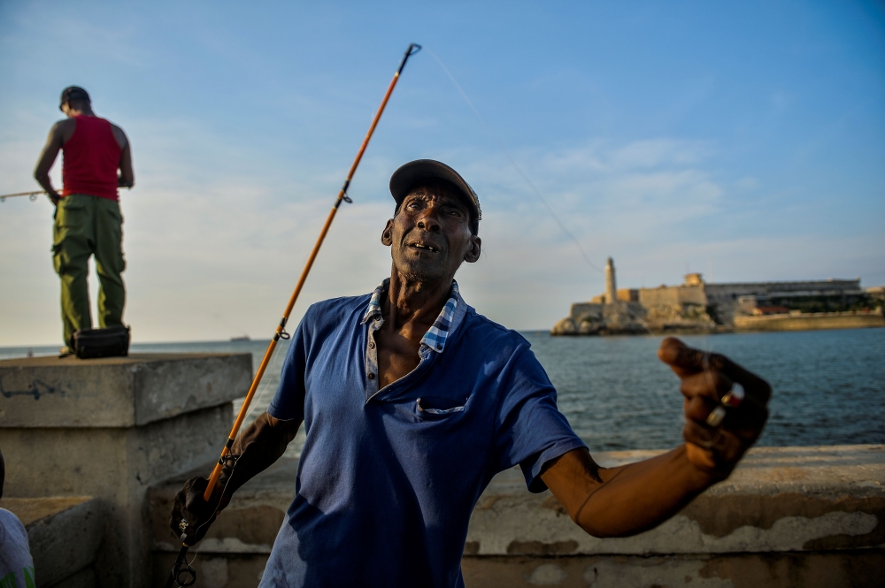 Roberto Molina is one of the many people who sit on the Malecon with a fishing rod dangling in the Atlantic.