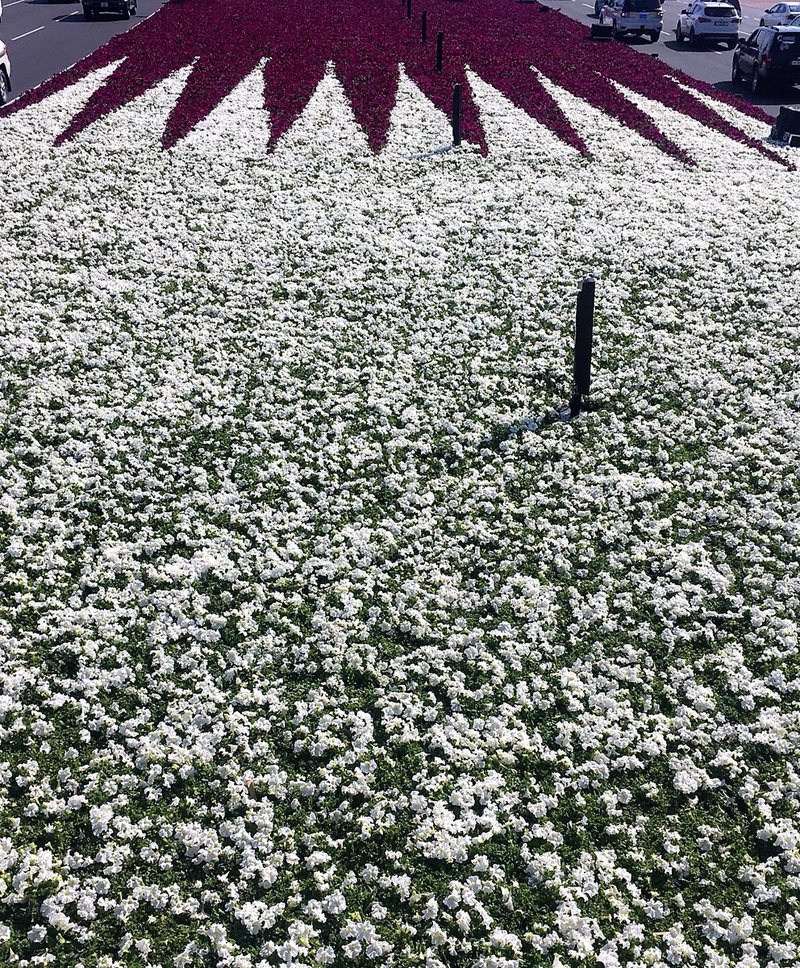 Mohamed Ali El Khoury, Director of the Public Parks Department, said that about 225,000 flower seedlings - 150,000 burgundy flowers and 75,000 white flowers - were used in the formation of the flag, which is around 200 square meters (110 meters long and 20 meters wide).