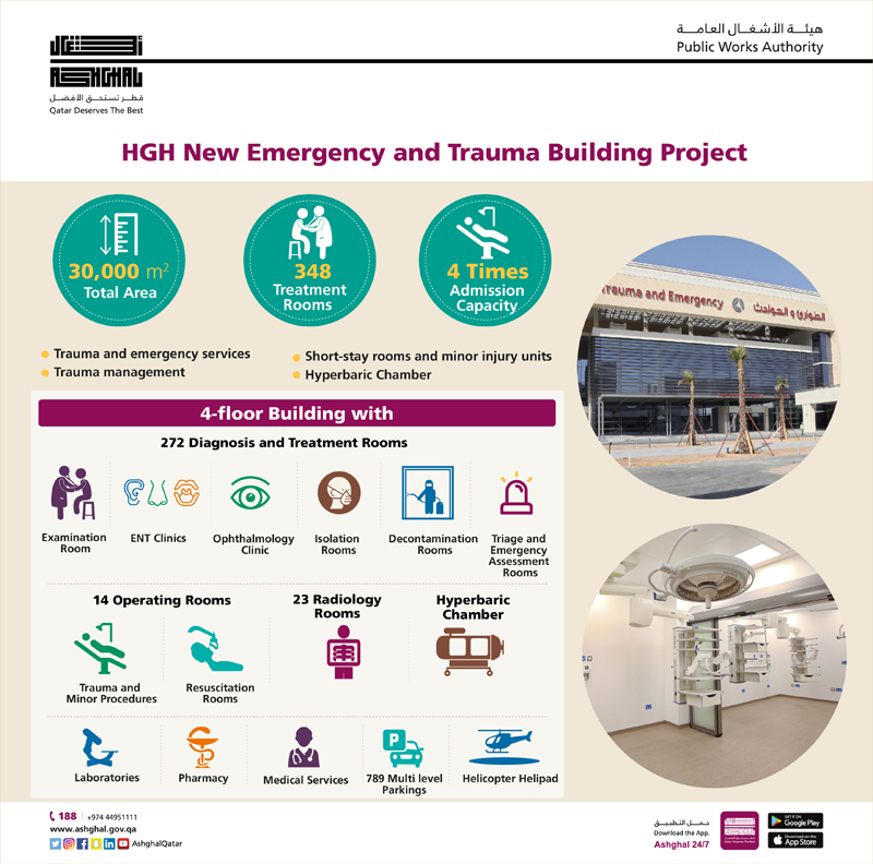Doha: New Hamad General Hospital Trauma and Emergency Department has been completed by Ashghal and handed over to Ministry of Public Health.
