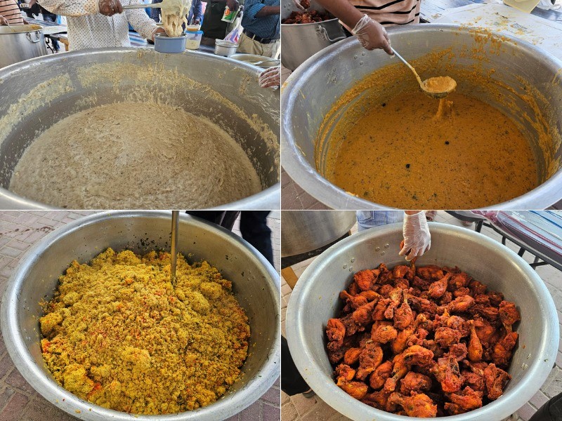 Sidhik Kunduprayambil, the family chef of 27 years, tirelessly prepares meals before dawn to fill six massive stockpots and five medium ones with chicken majboos, chicken biryani, dal, and harees.