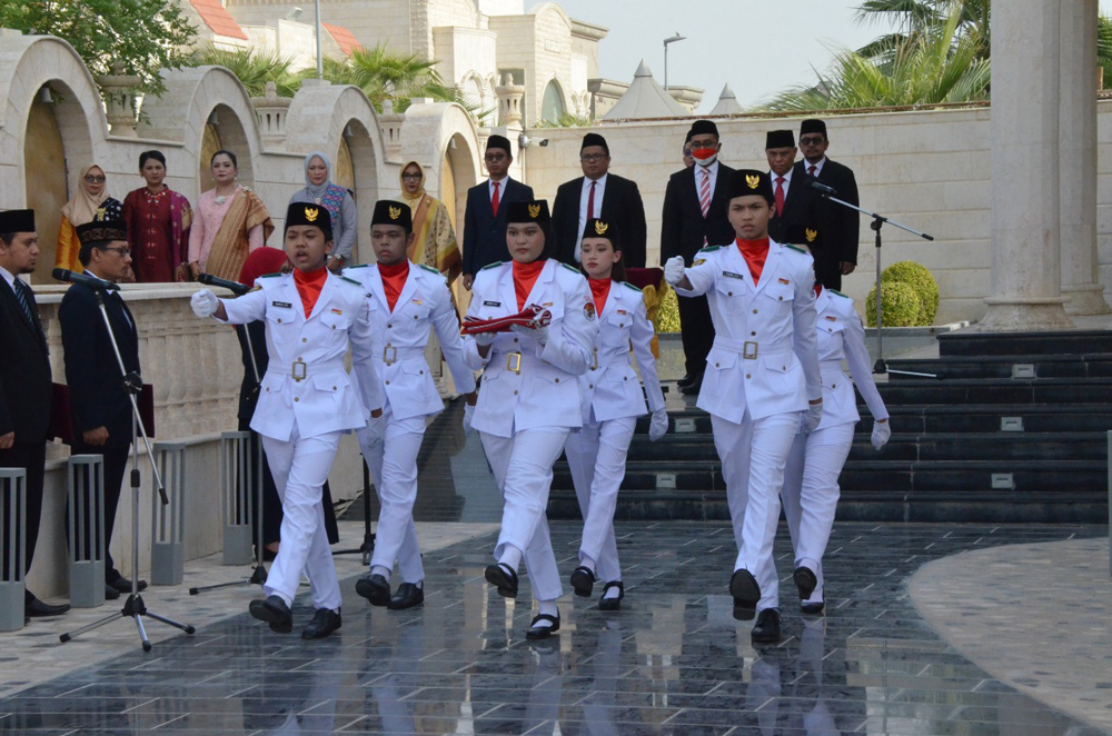 The celebration started at 7am with a flag raising ceremony attended by the community and Indonesian students in the country.
