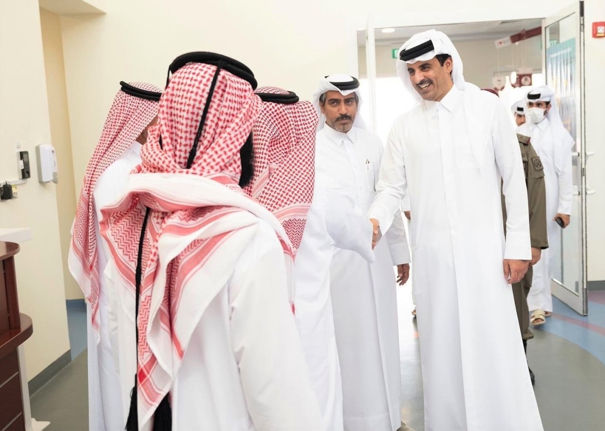 DOHA: The Amir HH Sheikh Tamim bin Hamad Al Thani visited today Al Kharsaa Primary Preparatory School for Boys. His Highness was briefed by the administrative body on classrooms and school facilities, and also listened to a briefing from the teaching staff on curriculums and modern teaching methods used in the school.