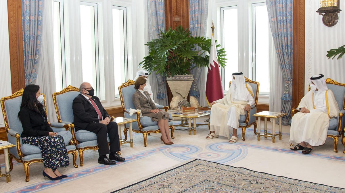 Doha: The Amir HH Sheikh Tamim bin Hamad Al Thani received, in his office at the Amiri Diwan, today morning, November 18, 2021, Vice President of the Dominican Republic, HE Raquel Peña, and the accompanying delegation.