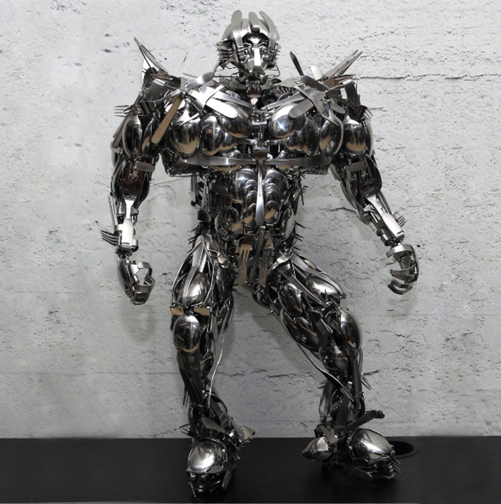 Depending on the complexity of his artwork, it takes more than a year to finish a large sculpture that comprises about 3,000 spoons and forks.