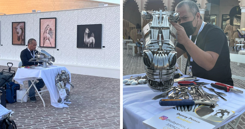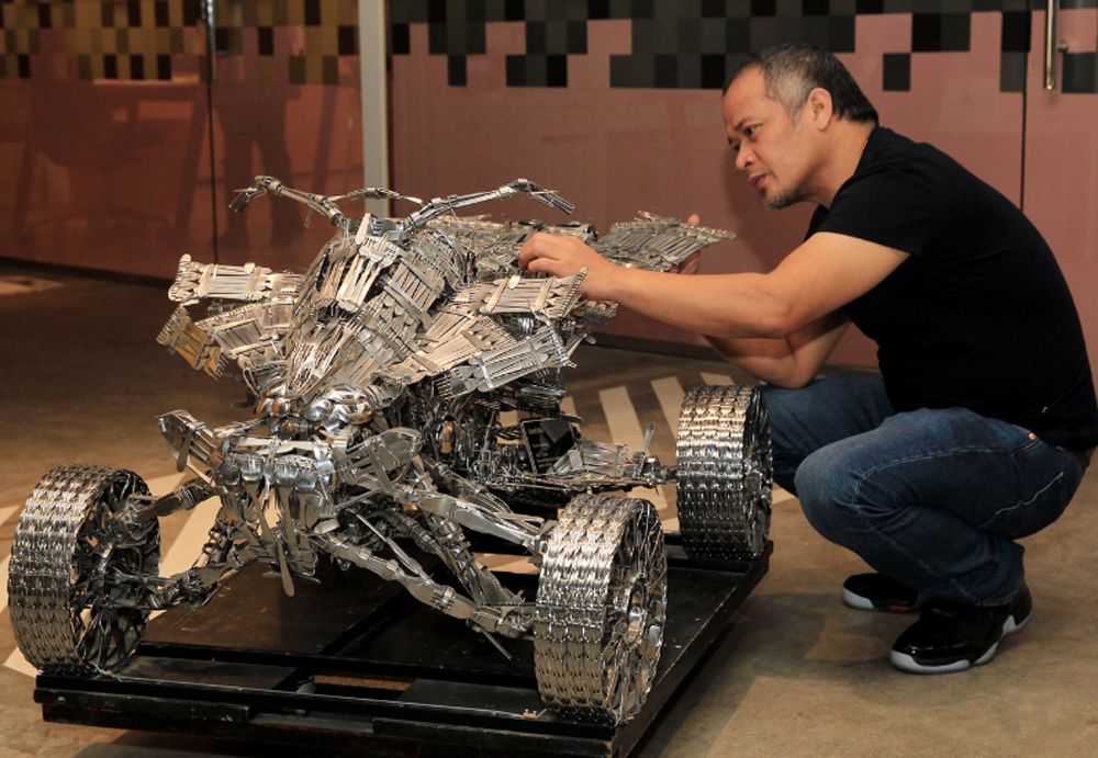 The 47-year-old artist said that he began creating simple metal artworks from scrap materials back in his home country, The Philippines, in 1999. When he arrived in Qatar in 2006, he continued exploring the art of metal sculpture using scraps, until an animated film gave him the idea to use stainless spoons and forks to pursue his craft.