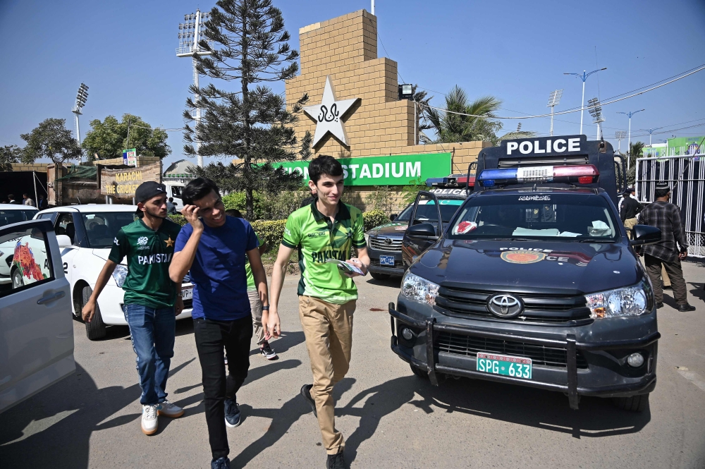 Spectators arrive at the National Stadium in Karachi on February 19, 2025. (Photo by Rizwan Tabassum / AFP)