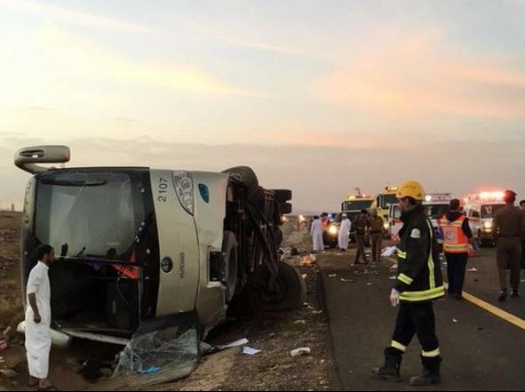 The accident came a day after at least 14 Palestinian pilgrims en route to Mecca died in a bus crash in southern Jordannear the Saudi border.
