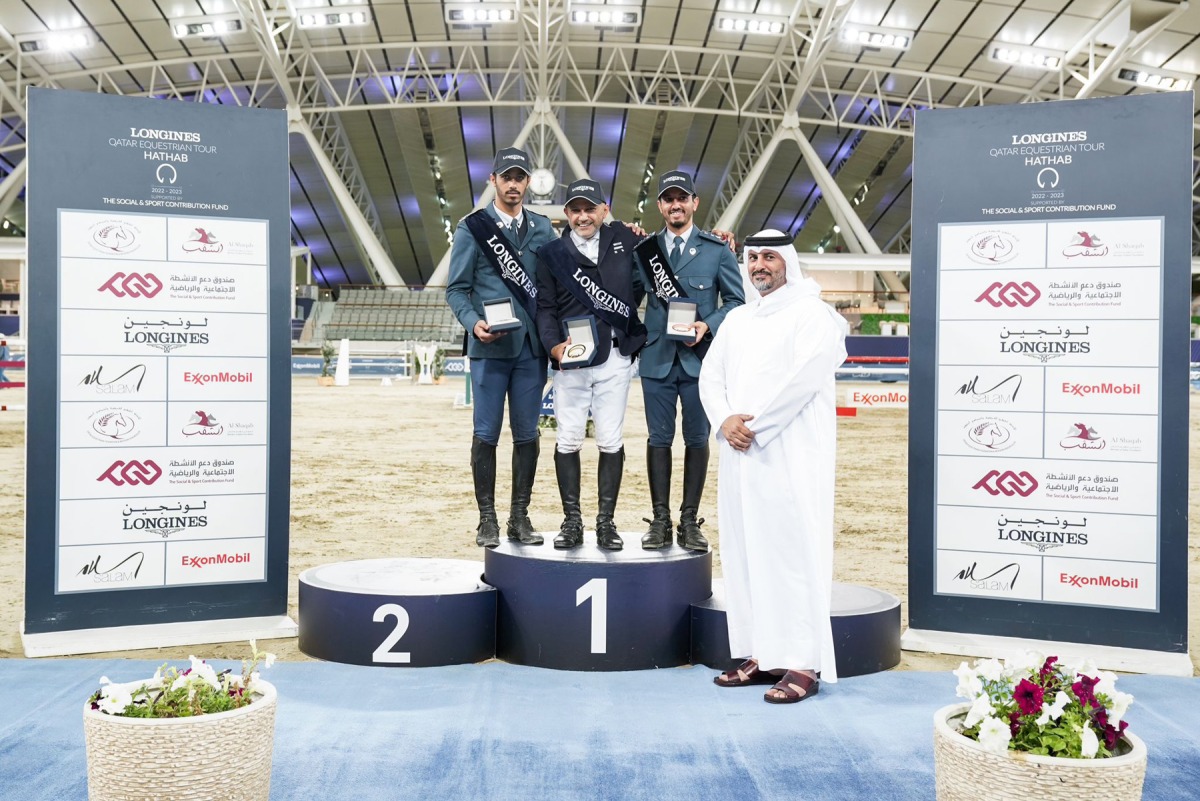 Qatar Equestrian Federation's Technical Director and former Olympic rider Ali Yousef Al Rumaihi with the podium winners of the Big Tour.