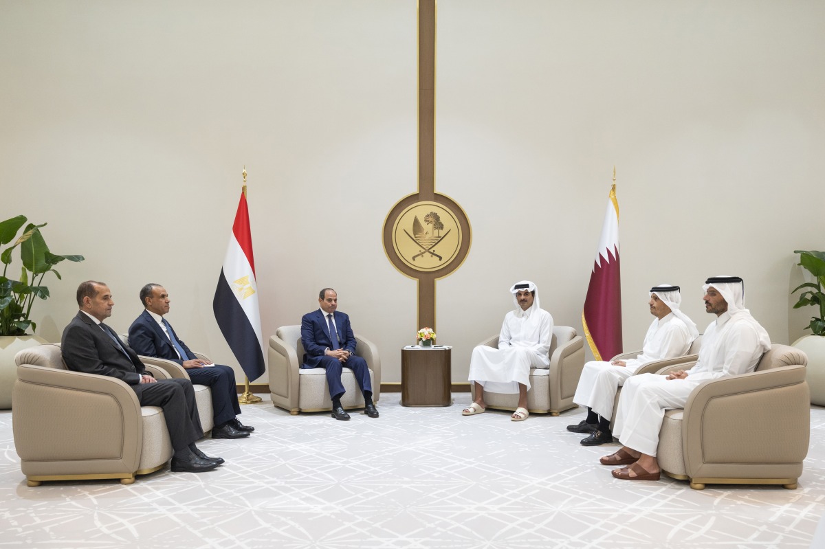 During the meeting, His Highness the Amir and His Excellency the Egyptian President exchanged greetings and congratulations on the occasion of the approaching Eid al-Fitr, praying to God Almighty that it returns to both countries and their brotherly peoples with blessings and prosperity.