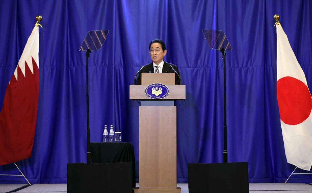 Prime Minister of Japan, H E Fumio Kishida, addressing the press conference in Doha. Pic: Salim Matramkot / The Peninsula