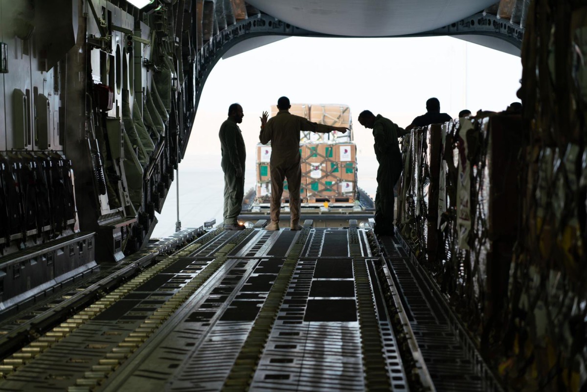 Doha, Qatar: A Qatari plane belonging to the Armed Forces headed to the city of Al-Arish in Egypt, carrying 41 tons of food and shelter supplies on Sunday, November 19, 2023.