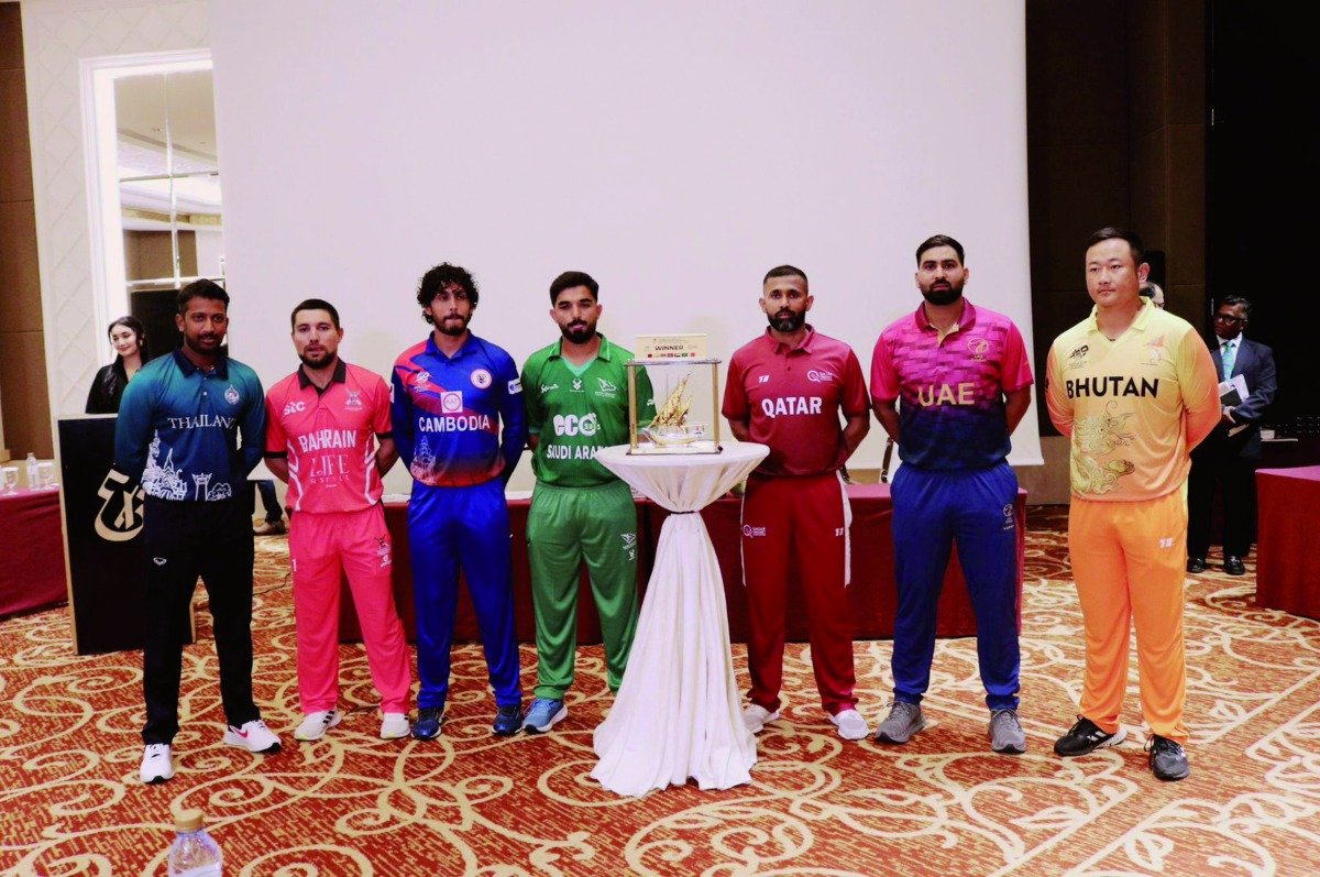 Captains of Qatar, Saudi Arabia, Bhutan, Bahrain, Thailand, UAE and Cambodia pose for a group photo during the launch event yesterday.