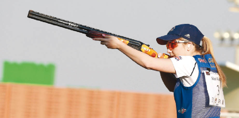 Amber Hill of Great Britain in action at the Qatar Open Shotgun championship at Losail Shooting Range yesterday. Hill won the event. Pictures by: Mohammed Faraj