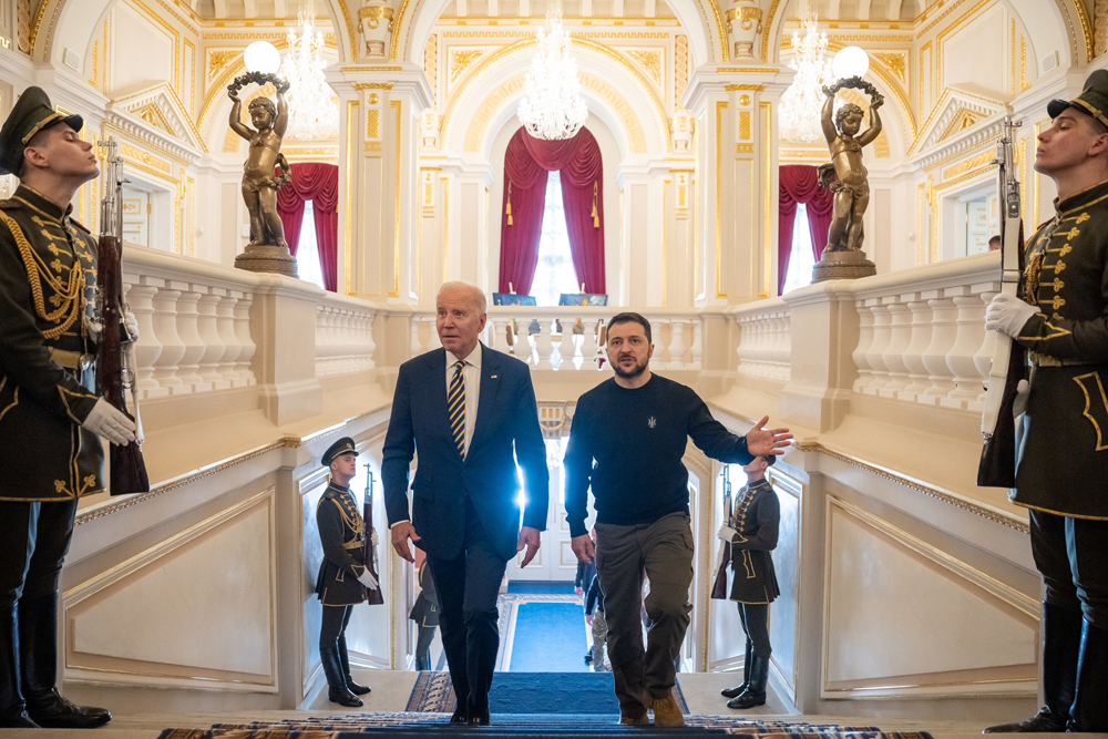 Biden delivered remarks and met with Zelensky at Mariinsky Palace to announce an additional half-billion dollars in U.S. assistance and to reassure Ukraine of American and allied support as the conflict continues.