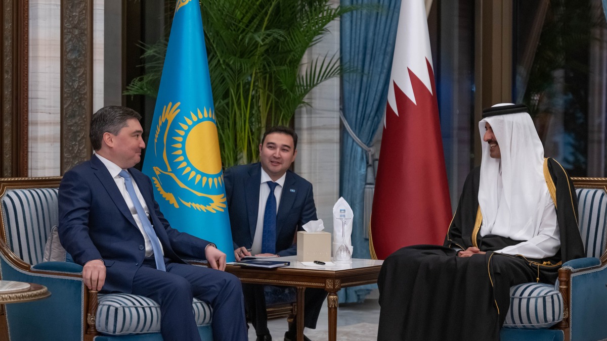Doha, Qatar: The Amir HH Sheikh Tamim bin Hamad Al Thani met at his office in Lusail Palace on Wednesday with Prime Minister of the Republic of Kazakhstan HE Olzhas Bektenov on the occasion of his visit to the country, along with his accompanying delegation.