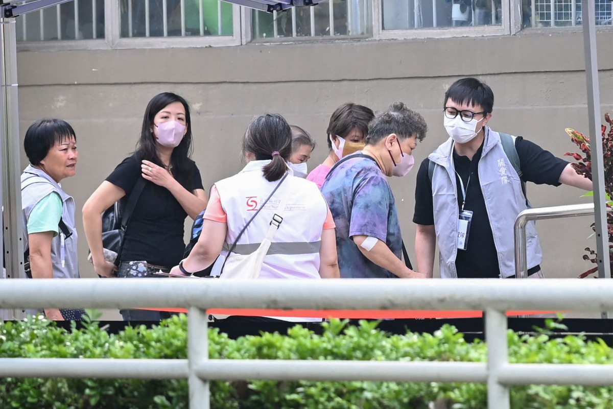 Residents of Wang Fuk Court residential estate arrive to return to their apartments in Hong Kong on April 20, 2026. Photo by Peter PARKS / AFP