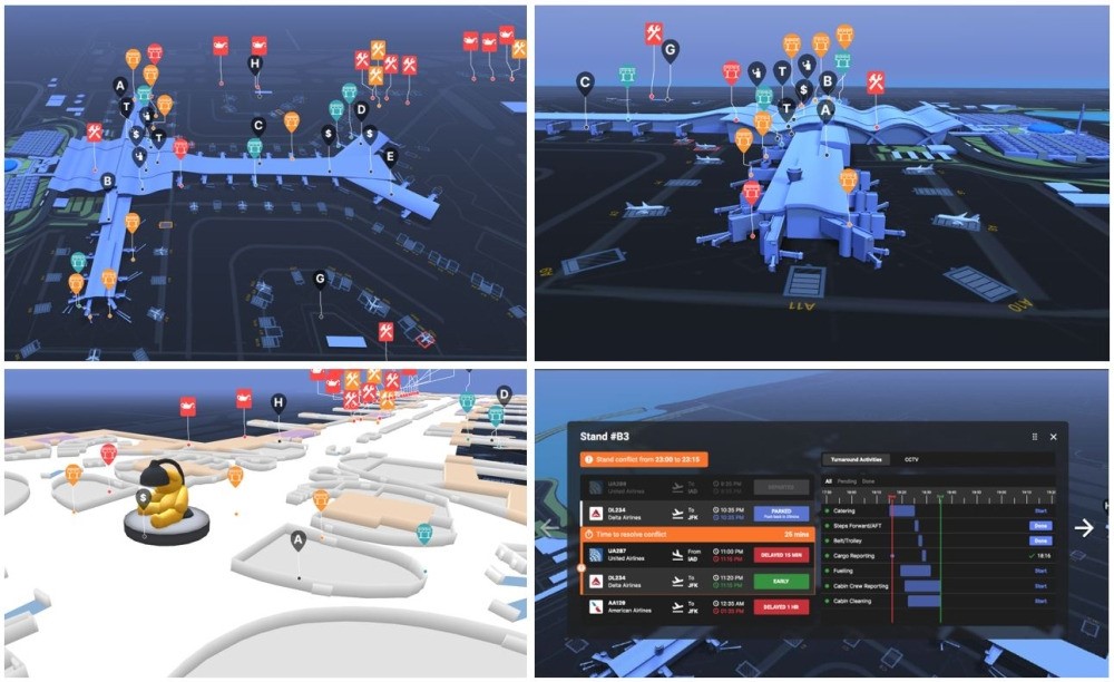 The platform provides a real-time, intuitive 3D interface that offers a comprehensive view of the entire airport. By leveraging advanced analytics and integrating information from multiple airport systems, the Digital Twin delivers powerful insights and recommendations to optimise operations. It effectively manages aircraft stand conflicts, responds swiftly to alerts and monitors the health of critical airport assets.