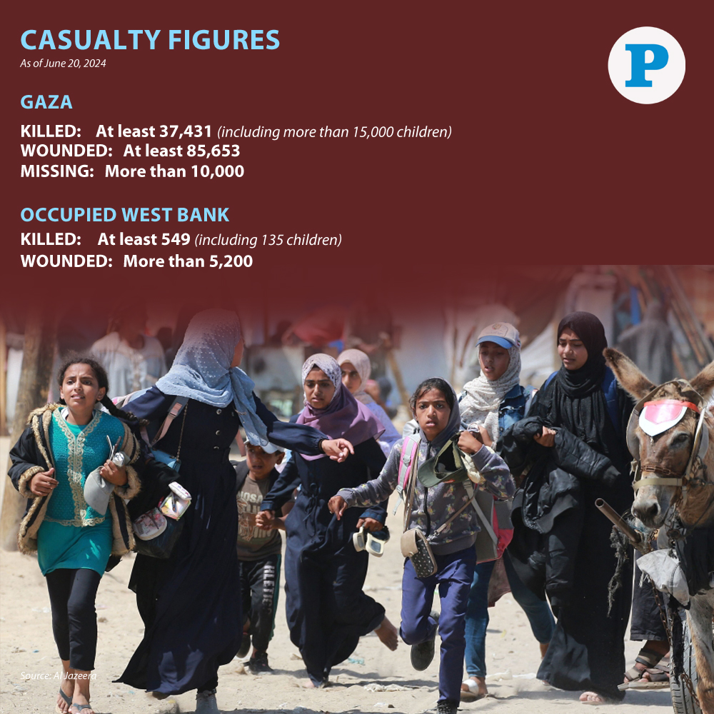 Gaza: The Ministry of Health in Gaza announced on Thursday, June 20, that the death toll from the ongoing Israeli occupation aggression against the Gaza Strip since October 7 has risen to 37,431 martyrs and 85,653 injured, most of whom are women and children.