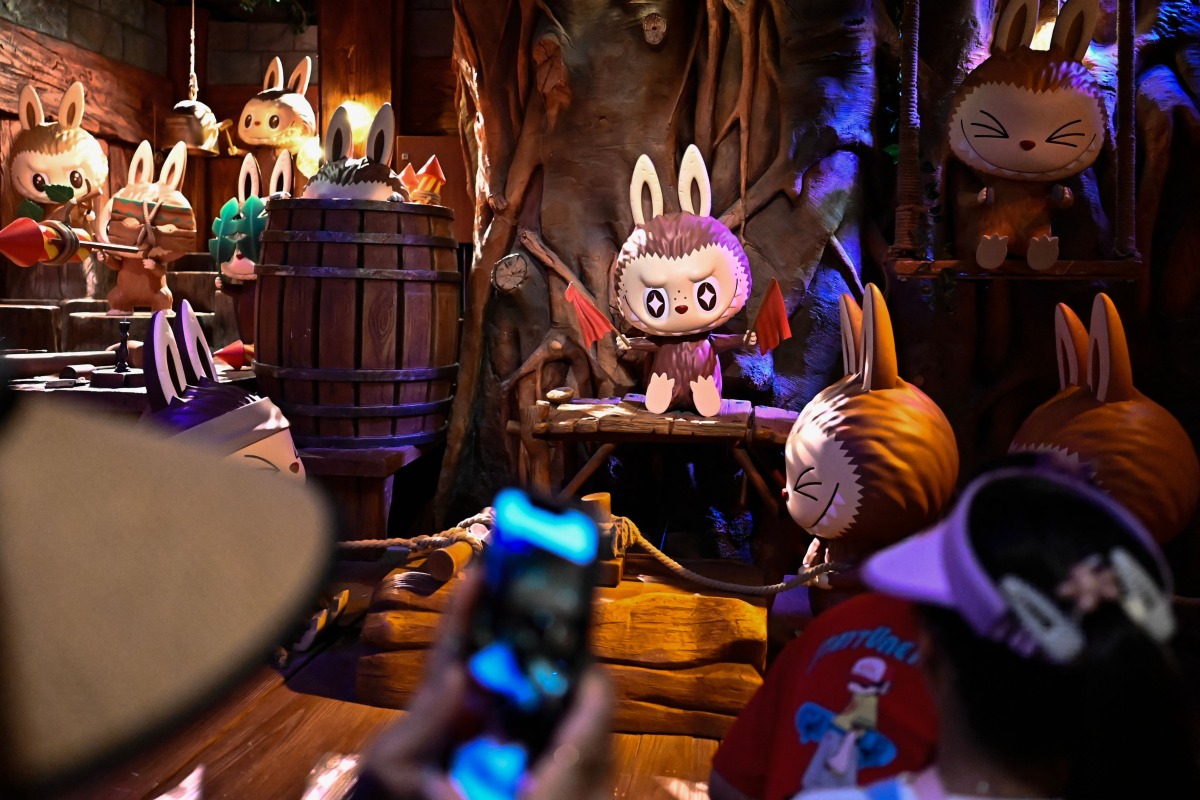 This picture taken on June 18, 2025 shows the character Labubu in an exhibition hall as people visit Pop Mart痴 theme park Pop Land in Beijing. Photo by Pedro PARDO / AFP