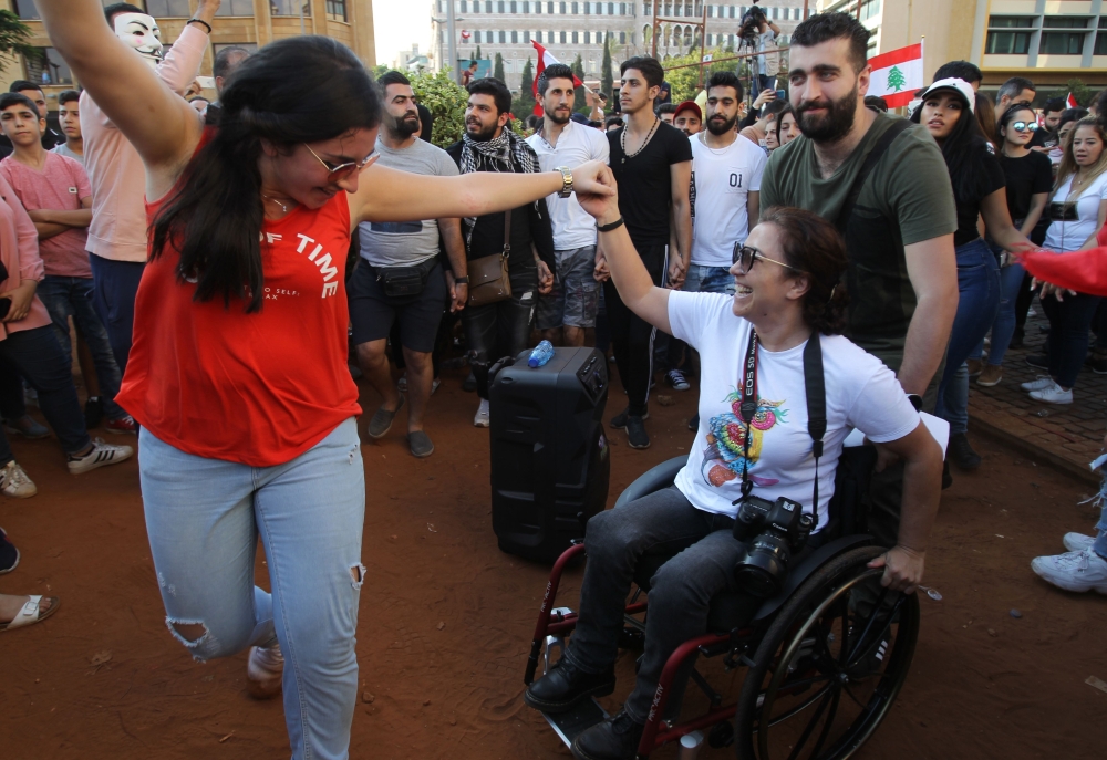 Demonstrators dance during an anti-government protest in downtown Beirut, Lebanon October 20, 2019. REUTERS/Mohamed Azakir