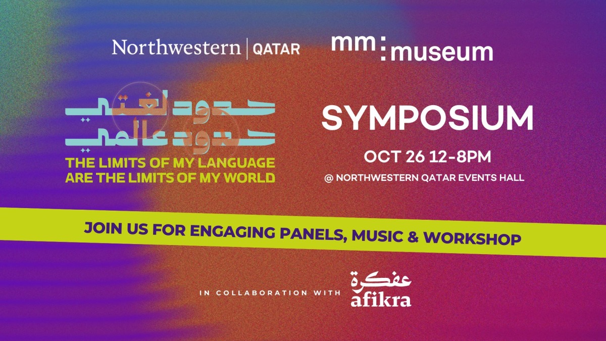 The day-long, multidisciplinary event at Northwestern Qatar’s campus in Education City coincides with the ongoing exhibition on Arabic titled “The limits of my language are the limits of my world,” curated by Northwestern Qatar alumna Amal Zeyad Ali. The programme will include several panel discussions featuring both local and regional voices, each focusing on a unique theme, as well as two performances and a variety of collateral activities.