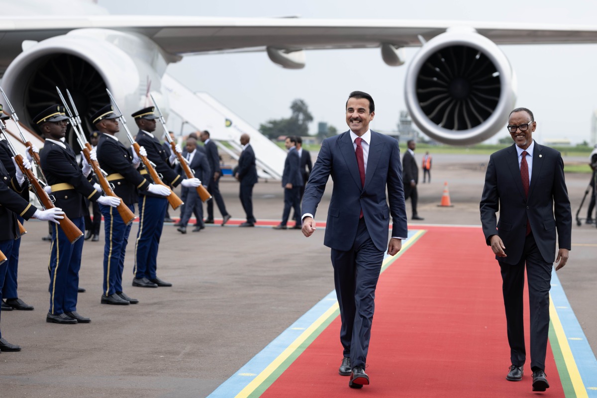 Doha, Qatar: The Amir HH Sheikh Tamim bin Hamad Al-Thani arrived in Kigali, the capital of the Republic of Rwanda, on an official visit.
