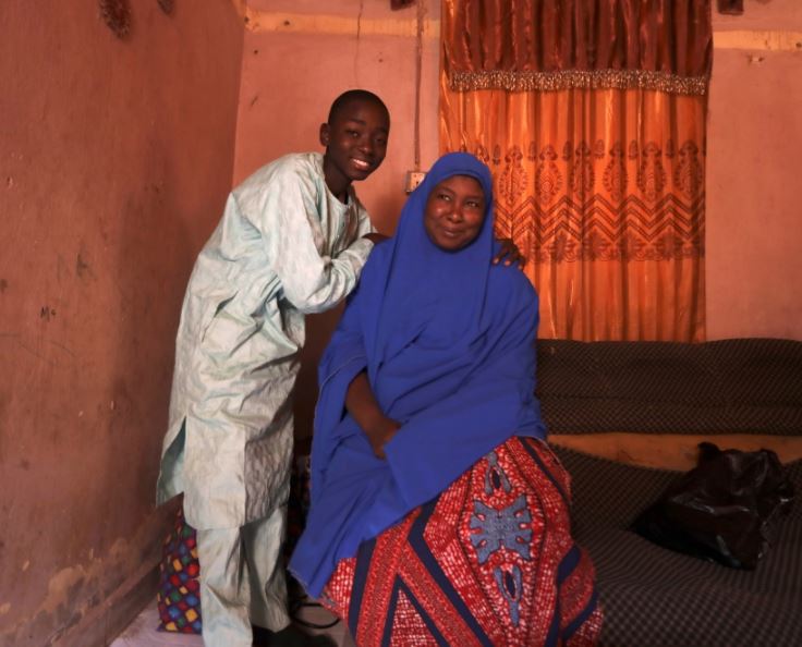 Annas Shuaibu, a rescued student, poses with his mother after he returned home in Kankara, Nigeria, December 19, 2020. Reuters/Afolabi Sotunde