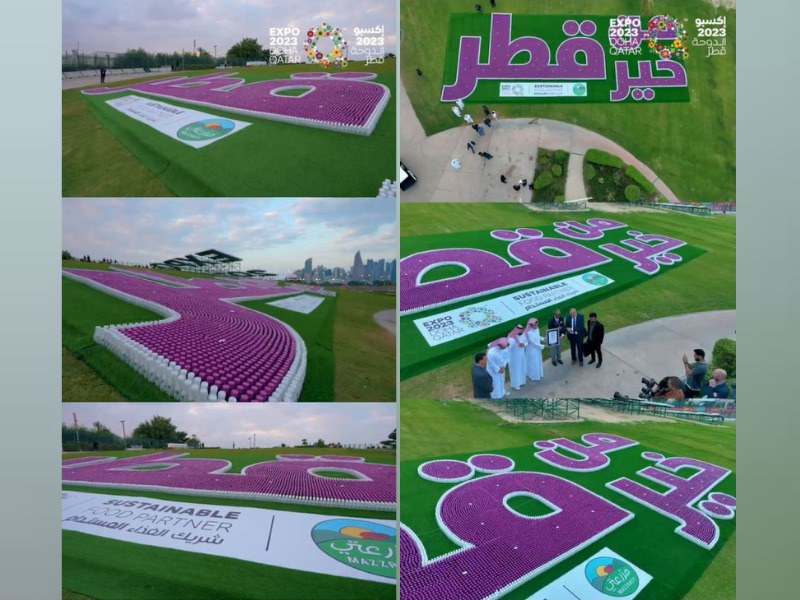 In collaboration with Expo 2023 Doha, Mazzraty, a Sustainable Food Partner of the Expo, achieved a Guinness World Record by creating the longest sentence using 35,003 bottles, spelling out ‘Qatar's finest.’ The sentence measured 10m X 25m (32.8ft X 82ft) made of upright tightly packed capped plastic bottles. The record-breaking sentence, surpassing the previous record of 32,000 bottles, is on display at the Family Zone of Al Bidda Park for visitors to witness the historical accomplishment and to highlight Qatar's commitment to environmental sustainability, circular economy, and social responsibility.