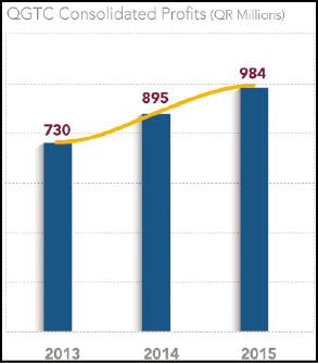 Nakilat’s operations have achieved a higher profitability level by growing business streams through the addition of three new LNG vessels to Nakilat’s LNG Fleet during 2015, full operation of vessels acquired during 2014, optimisation of operating expenses and leveraging lower finance costs.