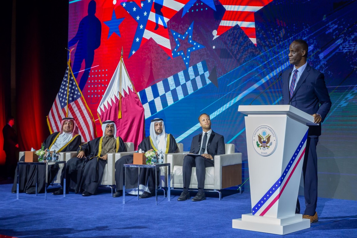 US Ambassador to Qatar H E Timmy Davis addressing guests.