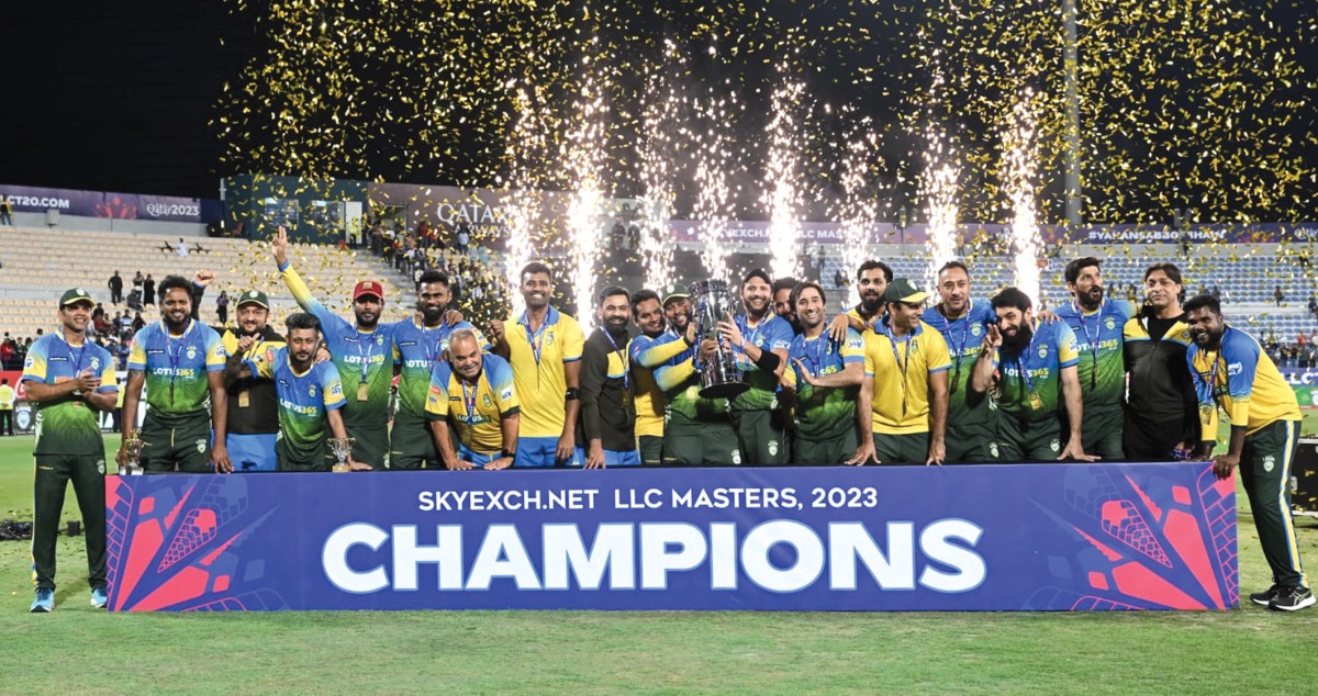 Qatar Cricket Association (QCA) President Sheikh Abdulaziz bin Saud bin Abdulrahman Al Thani handed over the winners’ trophy to Asia Lions captain Shahid Afridi as a 10,000-strong crowd cheered a seven-wicket victory for his side.