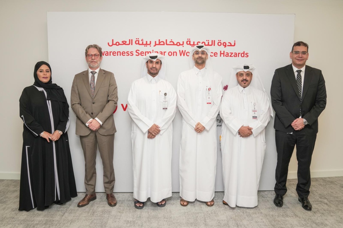 Doha, Qatar: The Ministry of Labour, represented by its Occupational Safety and Health Department, and Vodafone Qatar jointly organized an awareness seminar today for employees and contractor workers in the telecommunications sector. The event was held in cooperation with the Health Promotion Department at the Ministry of Public Health and the Qatar Red Crescent Society (QRCS), with participation from representatives of the Workers' Support and Insurance Fund.