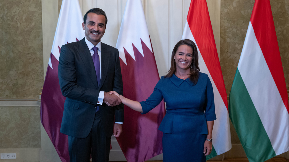 For his part, HH the Amir expressed his thanks to HE the Hungarian President for the good reception and the generous hospitality. His Highness expressed his aspiration to develop bilateral relations between the two friendly countries in various fields, especially energy, economy, and investment. His Highness also invited Her Excellency to visit Doha.