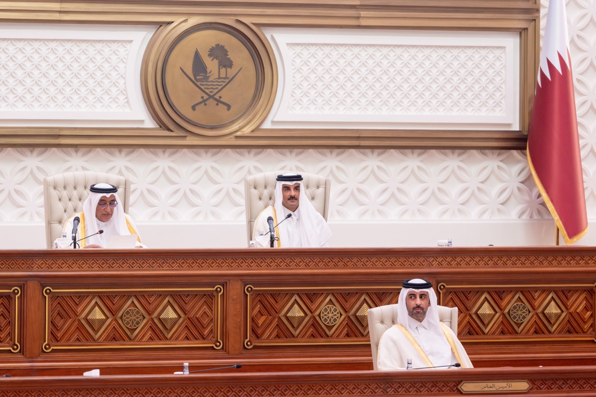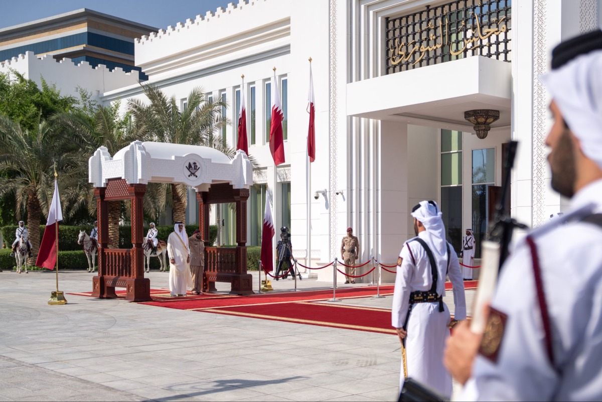 Doha, Qatar: The Amir HH Sheikh Tamim bin Hamad Al-Thani on Tuesday morning patronized the opening of the first ordinary session of the second legislative term, corresponding to the 54th annual session of the Shura Council, held at Tamim bin Hamad Hall at the Council's headquarters.