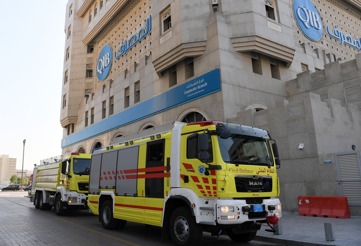 Doha, Qatar: A mock evacuation was carried out today at Qatar Islamic Bank's branch in Grand Hamad Street, spearheaded by the Operations Department of the General Directorate of Defense.