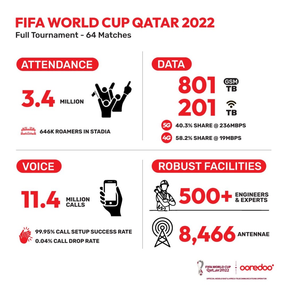 Doha: Ooredoo – Official Middle East & Africa Telecommunications Operator of FIFA World Cup Qatar 2022 - has announced record-breaking figures at the conclusion of the sporting mega-event, cementing its position as a world-leading telecommunications and ICT provider.