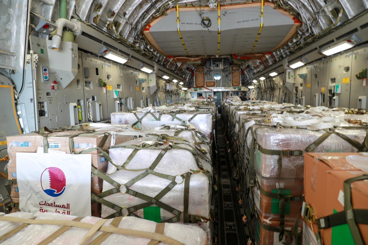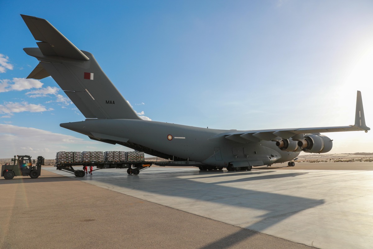 A Qatari Armed Forces plane headed to the city of El Arish in the Arab Republic of Egypt, carrying 20 tonnes of aid.