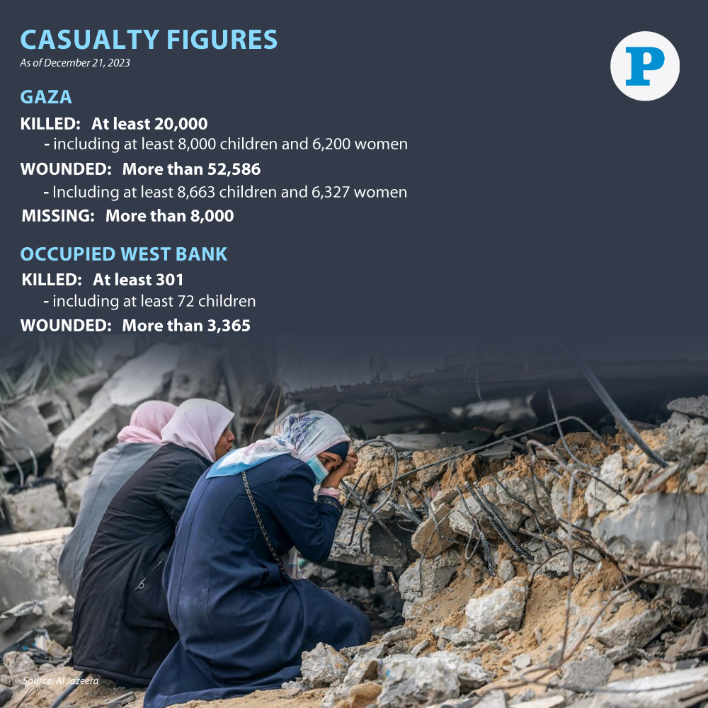 [5 pm Doha Time] Israel bombs more Gaza targets. In the far-southern city of Rafah, a centre for many internally displaced Palestinians, fireballs and smoke rose after explosions since yesterday. The latest death toll stands at 20,301 Palestinians.