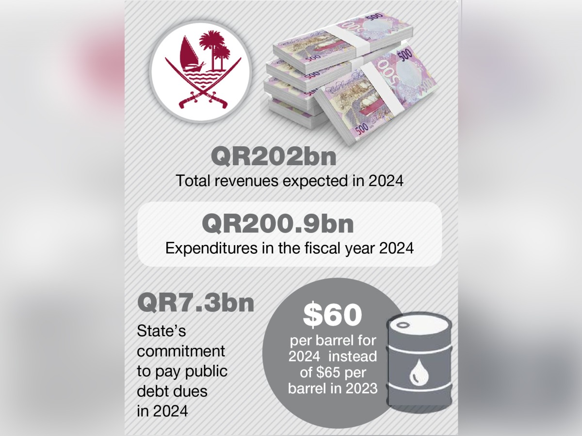 The expenditures in the fiscal year 2024 budget see an increase of 1 percent from 2023 to reach QR200.9bn, due to a rise in the allocations for salaries and wages in the 2024 budget by QR1.5bn, a 2.4 percent increase from 2023 to reach QR64bn, he added.