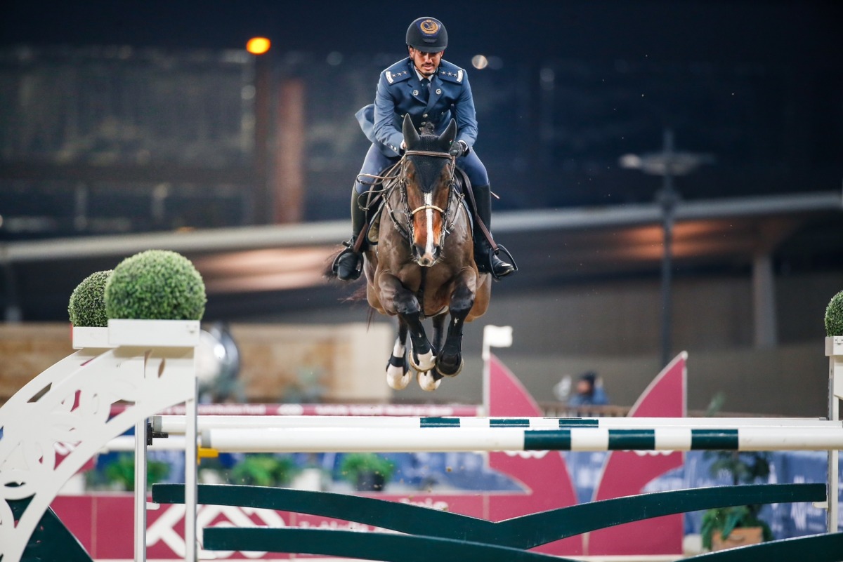 The 30-year-old excelled twice in the 13-rider jump-off, first riding bay gelding Larko Denfer and later returning on bay mare Ambre De Beaufour to set the course ablaze with a faultless and swift routine in 66.83 secs.