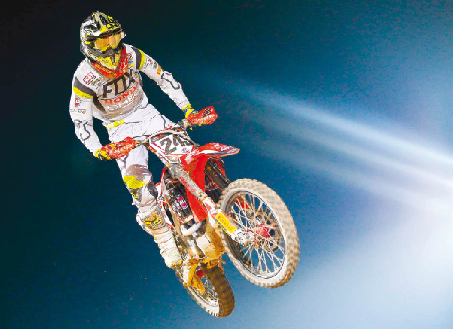 Hundreds of spectators watch the podium ceremony after the season-opening Qatar MotoGP race at Losail International Circuit on Sunday. CENTRE: QMMF President Abdulrahman Al Mannai (second left), Khalid Al Remaihi, Vice-Chairman and SG Losail Circuit Sports Club and Saud Al Attiyah, Chairman of Losail Circuit Sports Club pose with the riders during the event. RIGHT: Spanish MotoGP rider Jorge Lorenzo (centre) of the Movistar Yamaha MotoGP team celebrates on the podium after winning the Qatar MotoGP race with Italian rider Andrea Dovizioso (left) of the Ducati Team who won second place and Spanish MotoGP rider Marc Marquez (third place) at the Losail International Circuit.