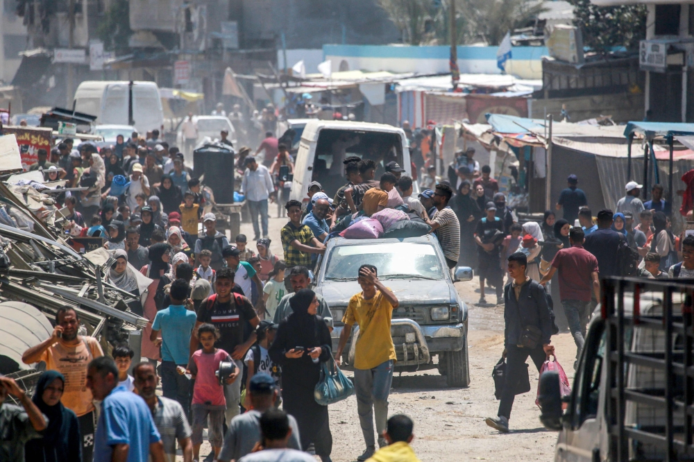Palestinian civilians move away from the eastern districts of Khan Yunis in the southern Gaza Strip on July 22, 2024. (Photo by Bashar Taleb / AFP)