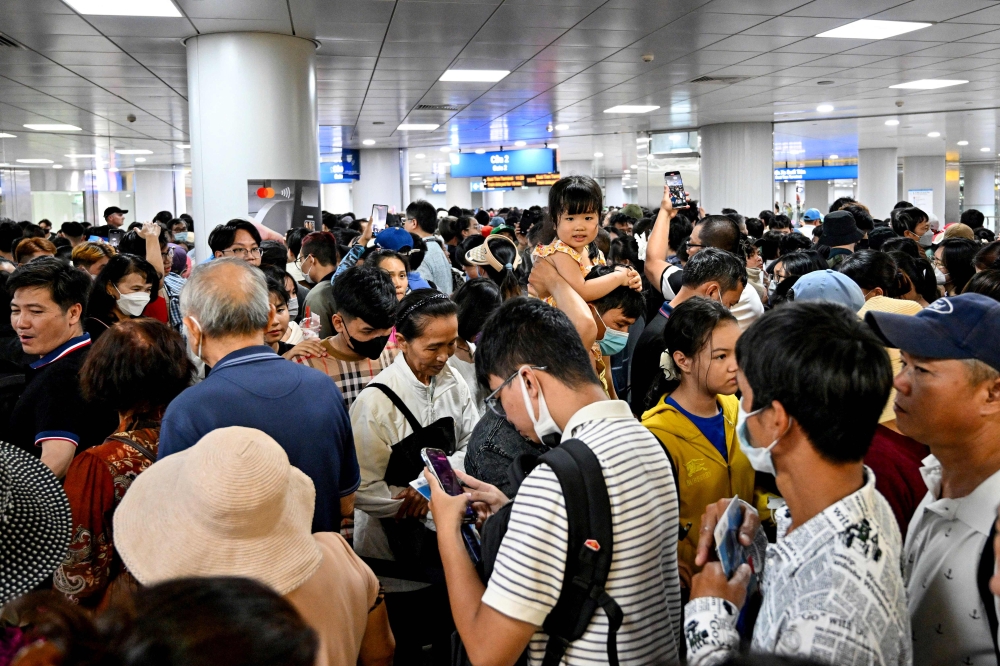 People wait to board a train at a metro station in Ho Chi Minh City on December 22, 2024. (Photo by Nhac NGUYEN / AFP)
