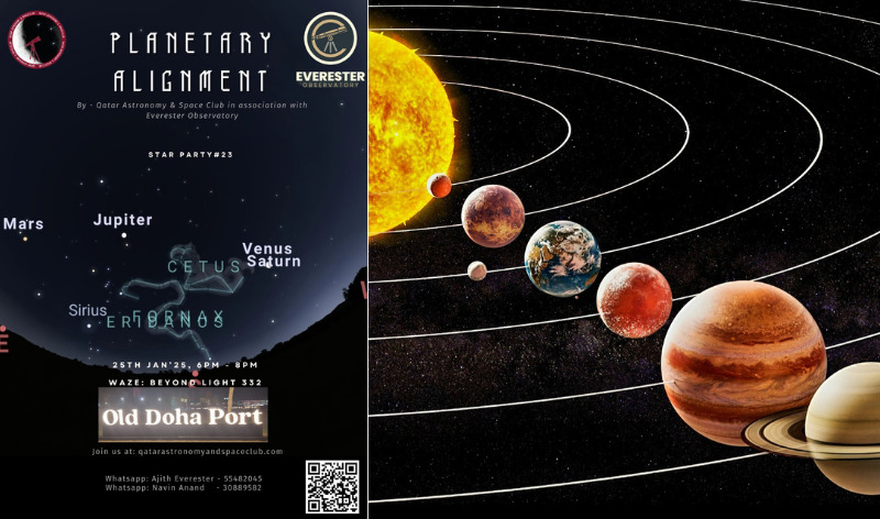 The Qatar Astronomy & Space Club, in collaboration with Everester Observatory, invites the public to witness this event on January 25, 2025, from 6pm to 8pm at Old Doha Port.