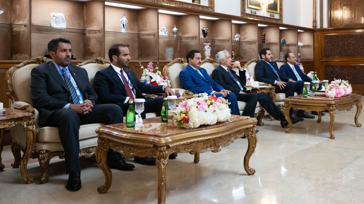 The meeting was attended by HE Sheikh Saud bin Abdulrahman Al Thani, Head of the Amiri Diwan, HE Sheikh Mohammed bin Hamad bin Qassim Al Thani, Minister of Commerce and Industry, HE Sultan bin Saad Al Muraikhi, Minister of State for Foreign Affairs, and a number of Their Excellencies members of the official delegation accompanying His Highness the Amir.