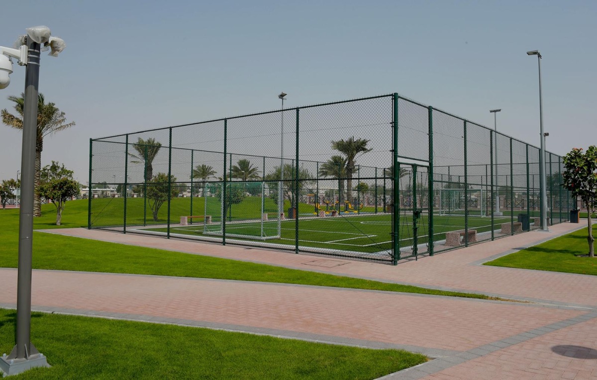 The park also contains three football fields (the first field with an area of 1,847 square meters for adults, the second field with an area of 450 square meters for children from 6 to 15 years old, and the third field with an area of 288 square meters for children under 8 years old), in addition to a basketball court with an area of 553 square meters, and it includes a tennis court with an area of 667 square meters.